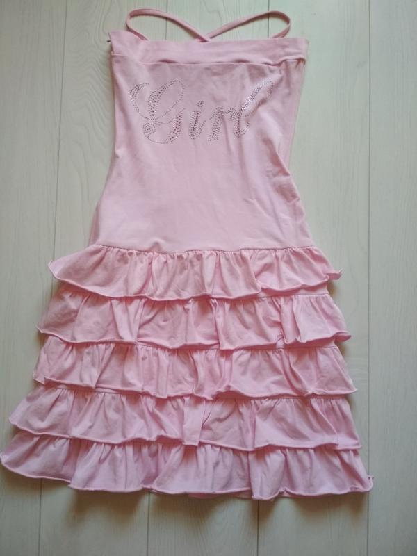 натуральный трикотажный,нежно розовый,для девочки.длинна от груди 69 см.