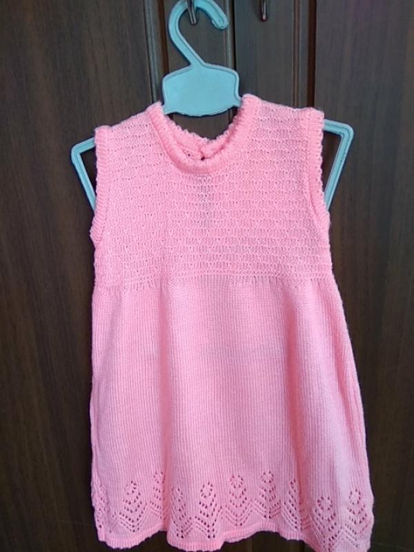 Вязаное нежное персиковое платьице, цвет на 2 фото совпадает. Длина 49,5, поб под мышками 25.