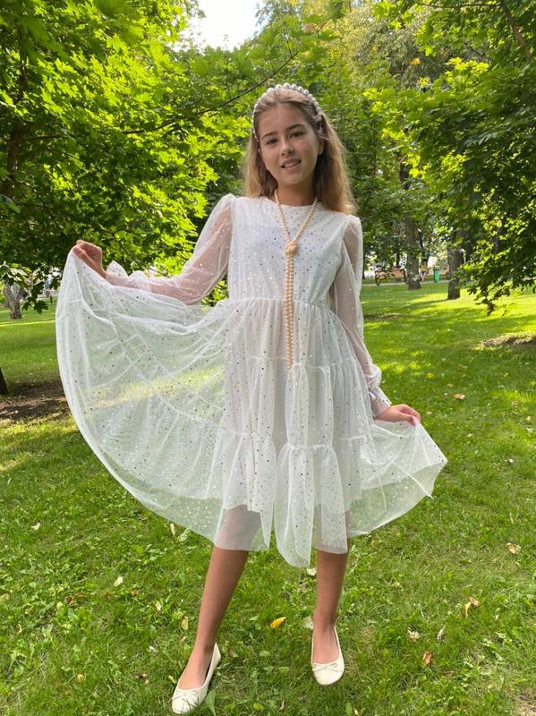 Нежное летящее платье в молочном цвете с блеском . Модель.Блеск для юных леди . Цвет: молоко. ✨Размеры: Р.32/128 , р.34/134, р.36/140, р.38/146, р.40/152, р.42/158.