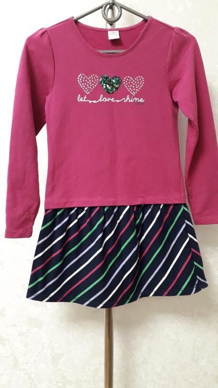 Платье с длинным рукавом.Верхняя часть платья плотный трикотаж на баечке. Рост 128 см ПОГ 33 см ПОТ 31 см Длина рукава от плеча 47 см Длина плеча 6 см Длина изделия 63 см Состав 96% котон 4% эластан