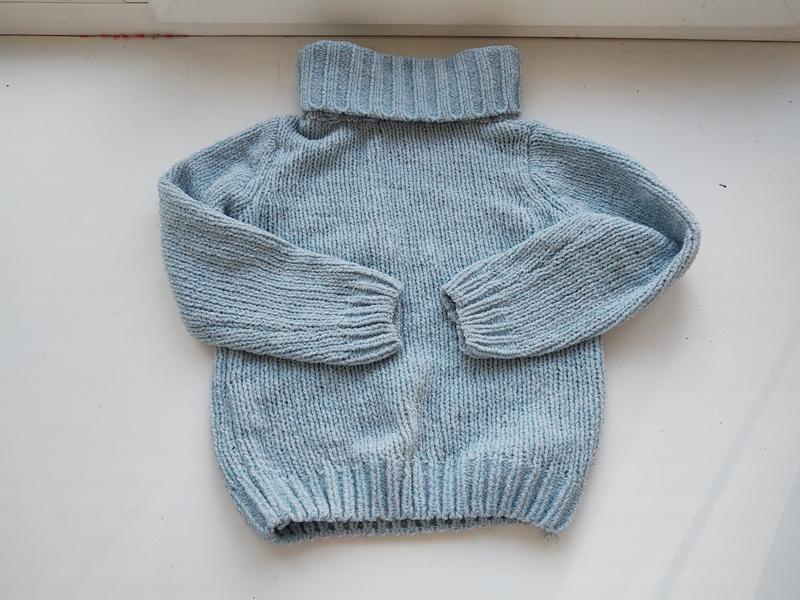 Красивый свитер с горлом. указано 122, но маломерит. идёт на 110-116. фото 4 нитка немного распустилась,но можно починить