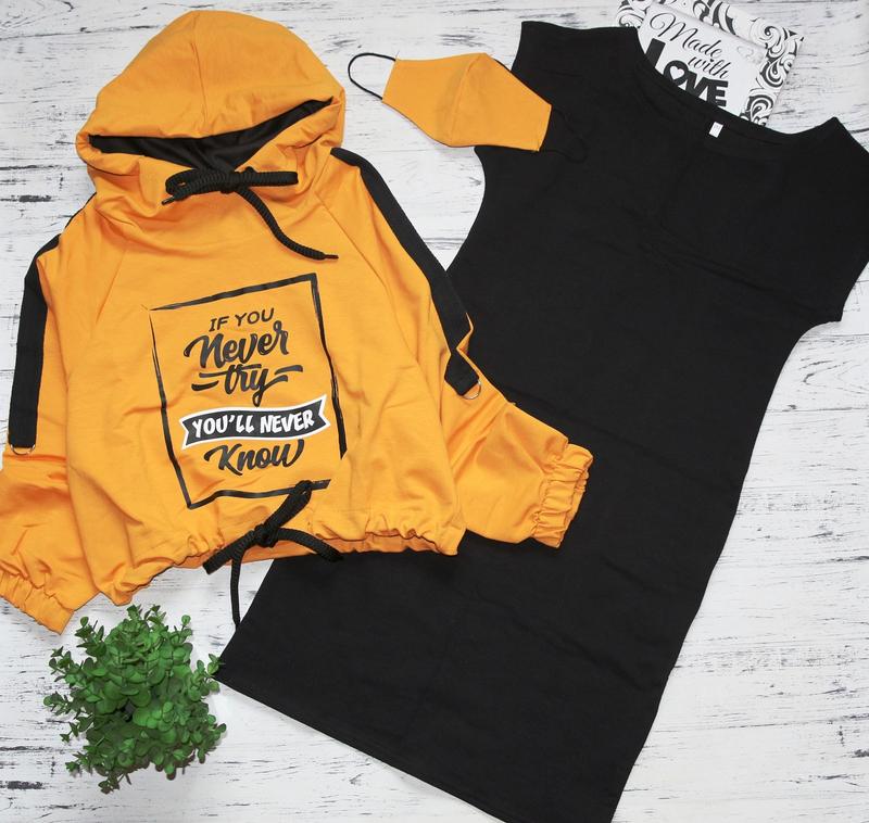 Крутая новинка! Костюм-двойка (свитшот оверсайз + платье) + маска в комплекте Ткань турецкая двунитка Шикарное качество! Дл кофты/ рукав от горловины/ ПОГ/ Дл платья/ ПОГ р.140 42см/ 51см/ 48см/ 78см/ 37см р.152 48см/ 58см/ 52см/ 87см/ 41см р.158 52см/ 63см/ 54см/ 91см/ 43см р.164 56см/ 66см/ 58см/ 92см/ 45см
