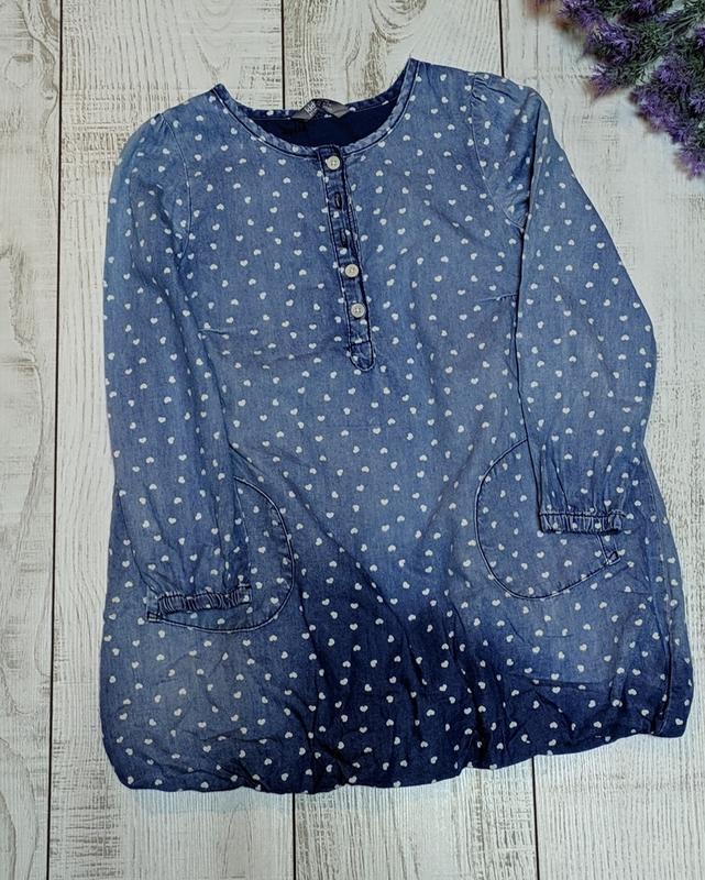 Свободного кроя платьеце. Лёгкий джинс. Низ подвернут на резиночке. Состояние хорошее. Без дефектов Внутри легенькая подкладка хб 6-7 лет Длина 59см Рукав 44см Пог 36см