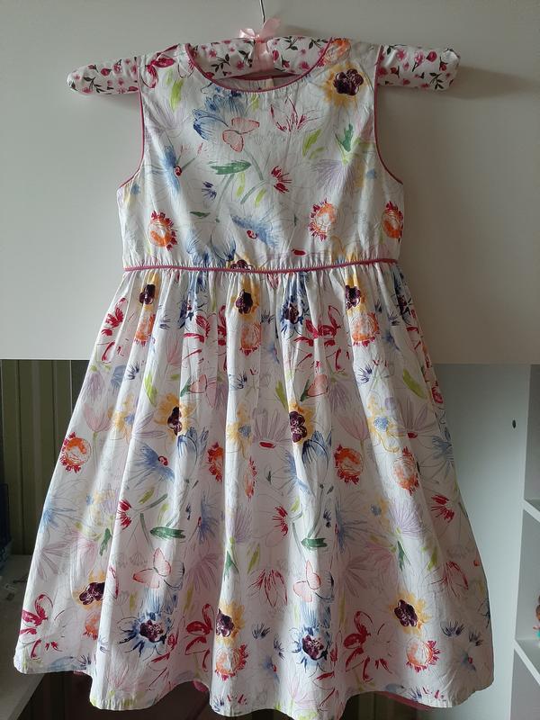 Милое,летнее платьице на возраст 4-6лет.Подкладка и само платье полностью хлопок,в нем будет не жарко.Состояние очень хорошее,без сюрпризов.Любую доп информацию и фото по запросу.