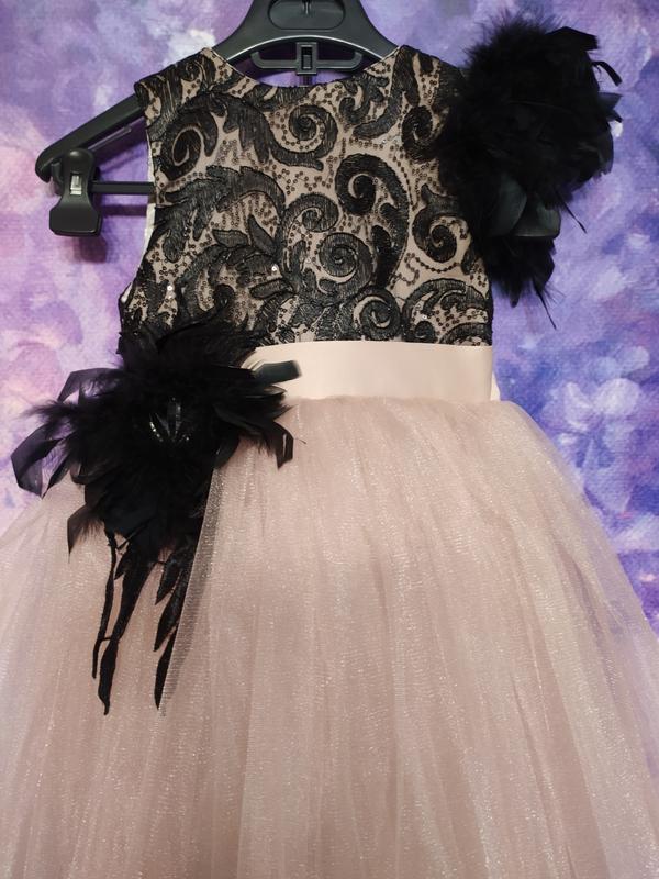 Невероятно красивое и стильное платье для маленьких принцесс. .В этом наряде ваша малышка будет в центре внимания на любом празднике. Очень красивое пышное платице для юной леди. Наряд выполнен из очень качественного материала. Верх платья украшен гипюром с расшитым узором из пайеток. На плечиках очень нежное" перо" , которое "играет" на ветру. Юбочка пышная из мягкого Фатина . Есть чехол в юбке. Сзади по спинке шнуровка для идеальной посадки на фигуру малышки.. Есть все размеры. В трёх вариантах длины. в пол по щиколотку по колено. Стоимость наряда зависит от размера и варианта длины. От 400 до 650 грн