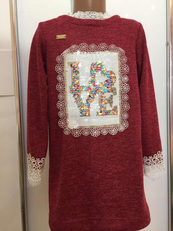 Очень красивое нарядное платье с кружевом и пайетками... Украина трикотаж мягкий приятный к телу Состав 55% вискоза 45% акрил. Цвет бордо. Размер 128 ширина груди 36см рукав 40см / манжета длина кружево 9см/. длина 64см. Размер 134 ширина груди 43см длина 68см . .