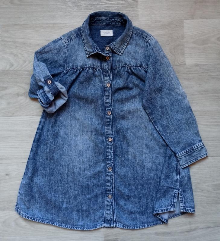 Джинсовое платьице Next на 3-4 года Состояние отличное! длина 55 см длина рукава от плеча 34 см, можно сделать 3\4 пог 34.5 см