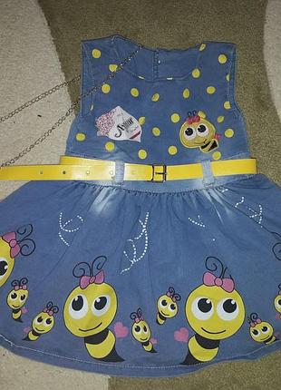 Новый сарафан не подошел размер к нему идет пояс и сумочка длина 44 см ПОГ 24 см размер 3 на худенькую девочку