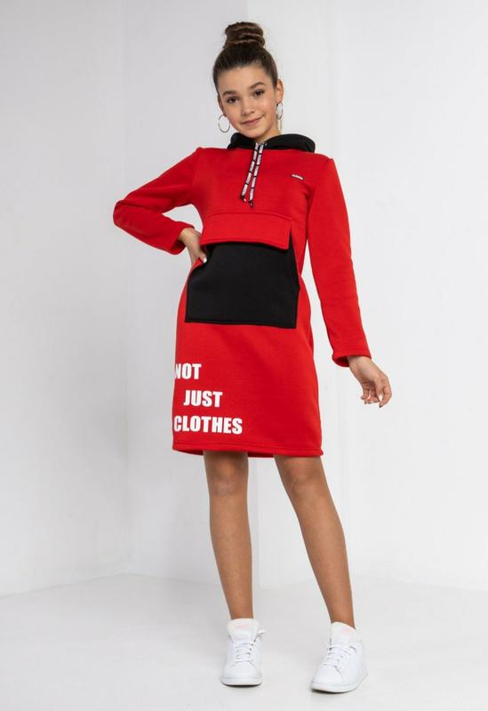 Тёплое платье, с оригинальным карманом кенгуру и капбшонгом тринить с начёсом Размеры: 128-134,140,146,152,158 рост