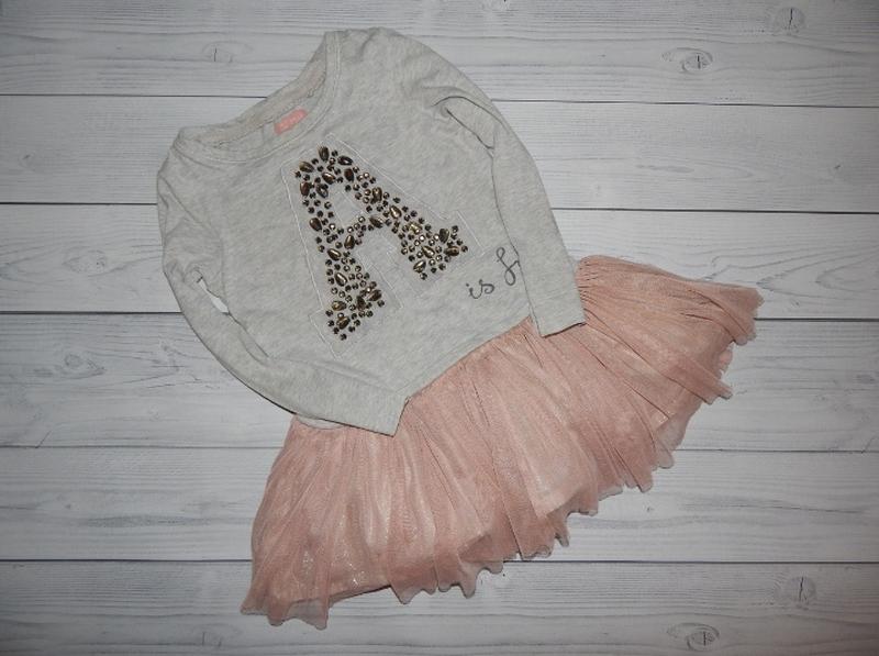 Очень классное необычное платье фирмы Next. Размер указан 104, но подойдет и на 110 см. Бусинки и камешки крепко пришиты. Состояние идеальное, без зацепок и других нюансов. Длина 52, ширина под ручками 29, рукав от плеча 35.