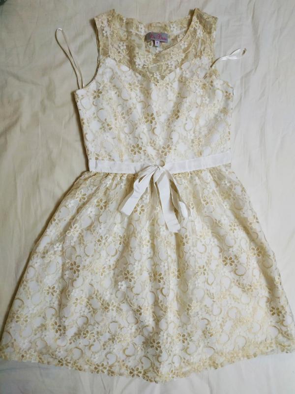 Бело золотое-указан размер 8-но реально на 10-11 лет. замеры - общая длина-80. по груди-39 см. по талии 33 см. Очень нежное и красивое, на подкладке,сбоку и сзади на змейке.Покупалось на английском сайте. Одевались несколько раз на праздники-состояние отличное.под него есть балетки бежевые с камнями.см. мои обьявления