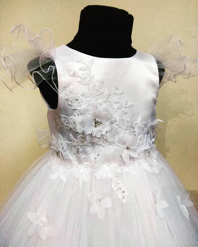 Легке, повітряне, зручне, ніжне плаття для маленької принцеси зростанням 98-104 див. 3-D елементи надають легкості, невагомості, пишність спідниці змушує відчути себе справжньою принцесою. На спинці напівпрозорий пояс, що дозволяє регулювати прилягання сукні по талії. Ручна робота, виконана в єдиному екземплярі.