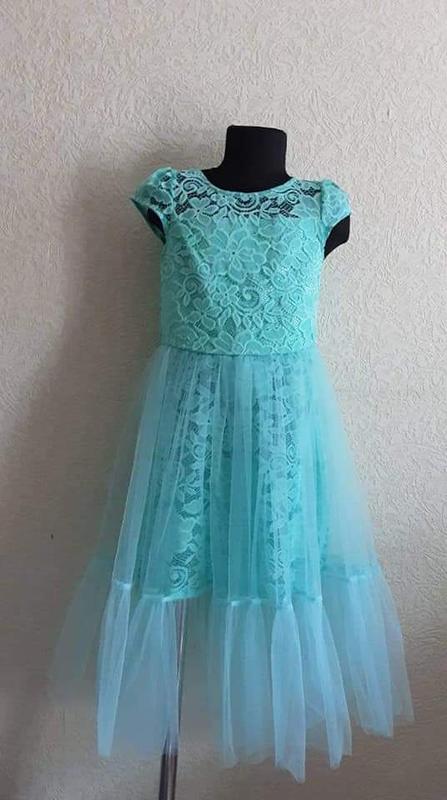 💚Мятное праздничное красивое платье для девочки из ❗ гипюра, ☝️верхняя юбка выполнена из евросетки. ✅ Размер : 128 см ; 134 см; 146 см.140 см. 152 см. ☝️Есть в разных цветах и размерах.