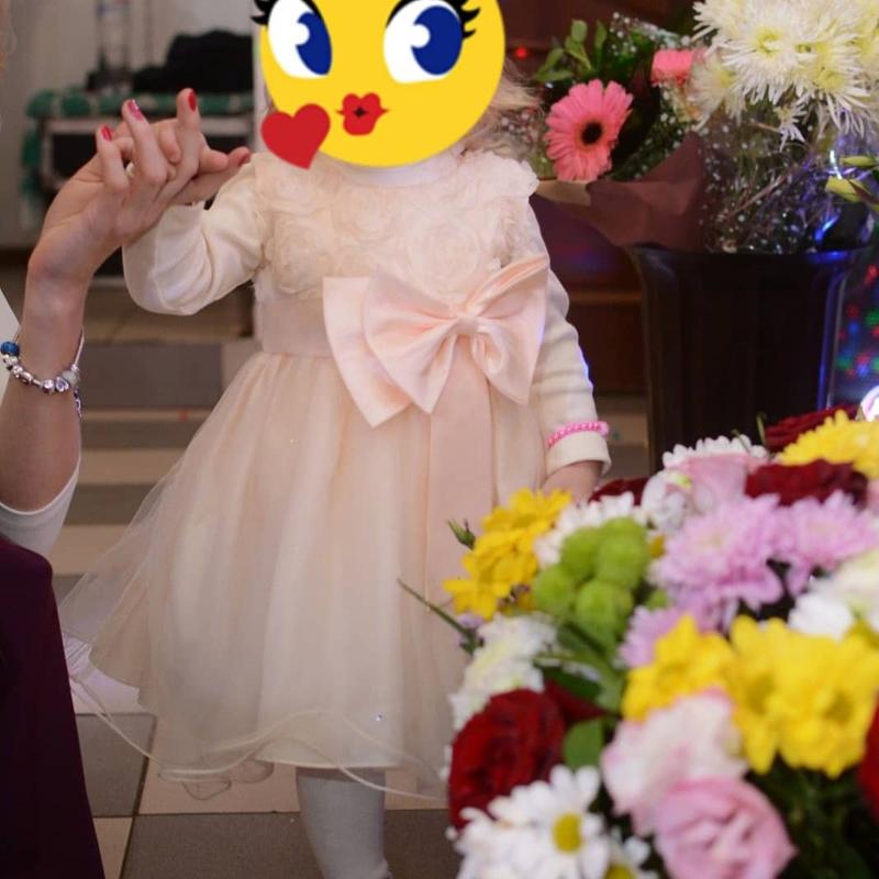 Продам платье нарядное нежно-молочного, персиково цвета .Юбка из 4 -х слоёв, очень пышная. Верхний слой фатина с блестками, смотрится супер эффектно!!!🍭Размер 80, но будет и дольше. Все замеры зброшу лично по запросу!