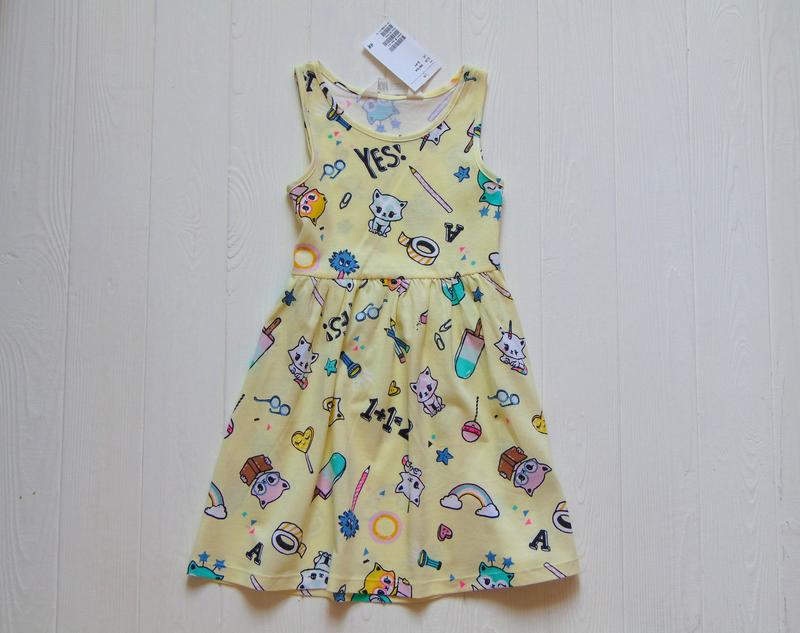 Новое яркое платье для девочки. H&M. Размер 2-4 года. Состояние: новое, с биркой. Состав: 100% хлопок. Замеры: длина 55 см, длина до пояса 23 см, ПОГ 27 см, пояс 26Х2 см, тянется, пройма для рукава 13 см, плечи 20 см. Материал тянется. Цена 190 грн.