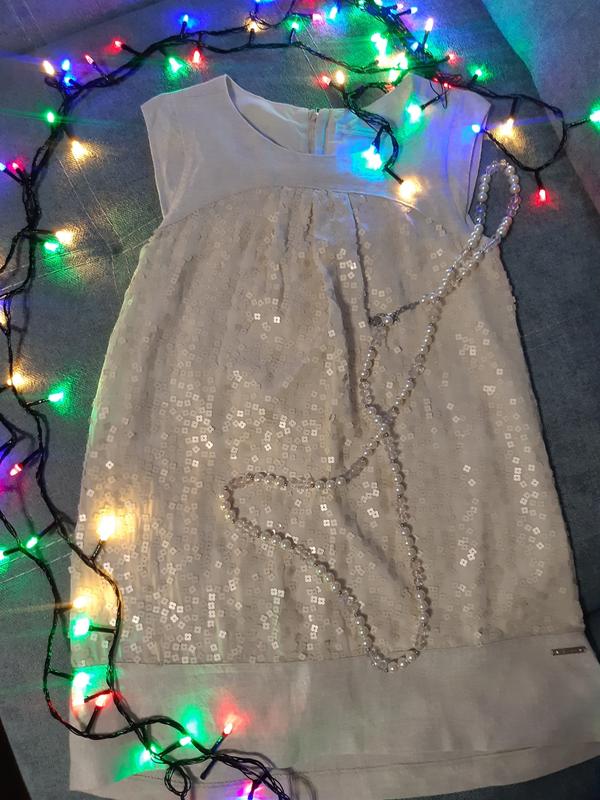 Нарядна сукня з паєтками на дівчинку 7-8 років. Плічка 27 см, під ручками 36 см, довжина 61 див.