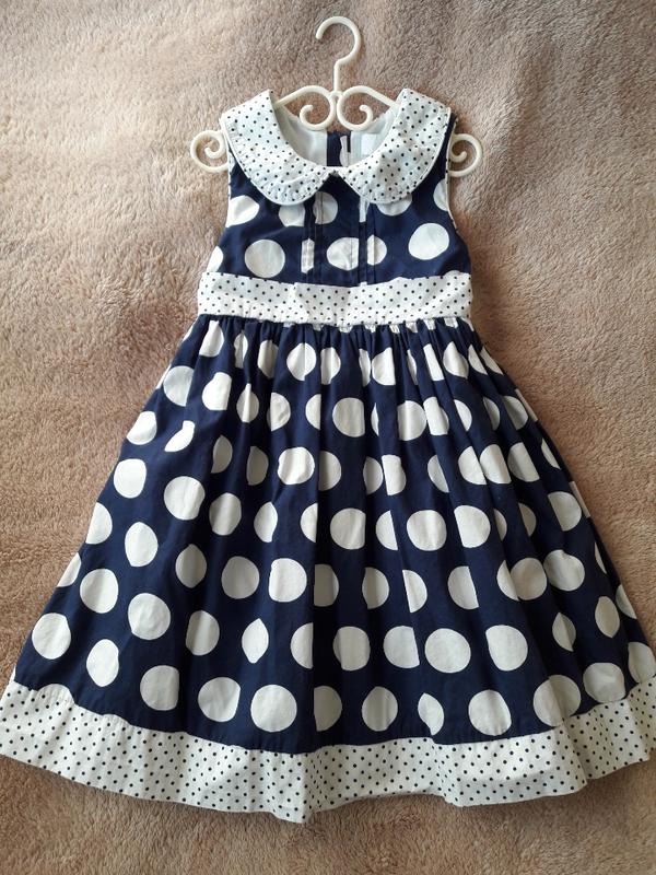 В отличном состоянии. Платье в горошек. На 4-5 лет, но можно и дольше. Длина 64 см. Смотрите мое объявления.