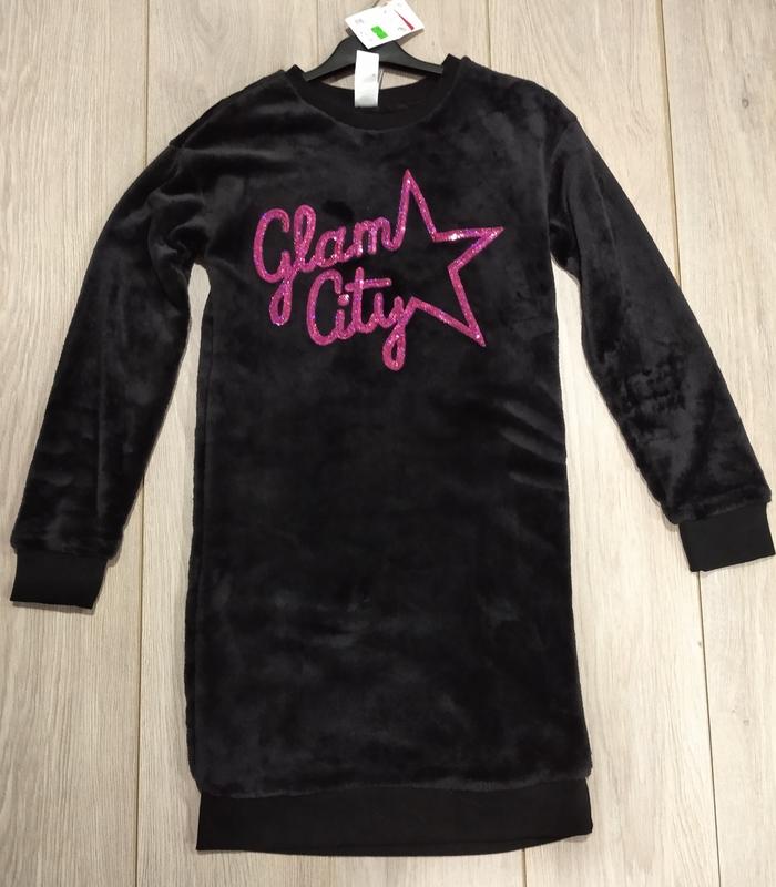 Плюшевое ровное платье - туника , очень мягкое и теплое, с паетками. Размер 146-152 см 158-164 см