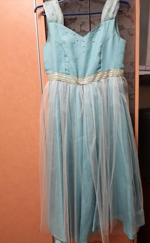Платье ручной работы, одевали 1 раз на выпускной.Нежное, Бирюзового цвета, сверху фатин с блестками. Юбка солнцеклёш. На полненькую девочку. (потому и шили) Длина-112см, ОГ- 84см, ОТ- 78см.
