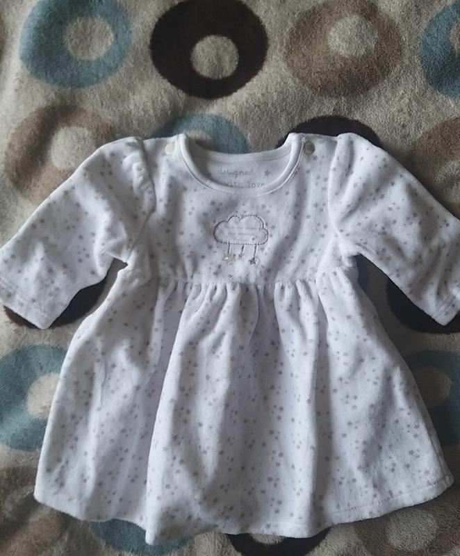 Очень красивое платьице на маленькую принцессу. Идет на рост 52 см, на малышку с роддома. Можно в нем забрать из него, потому как мы одели 1 раз