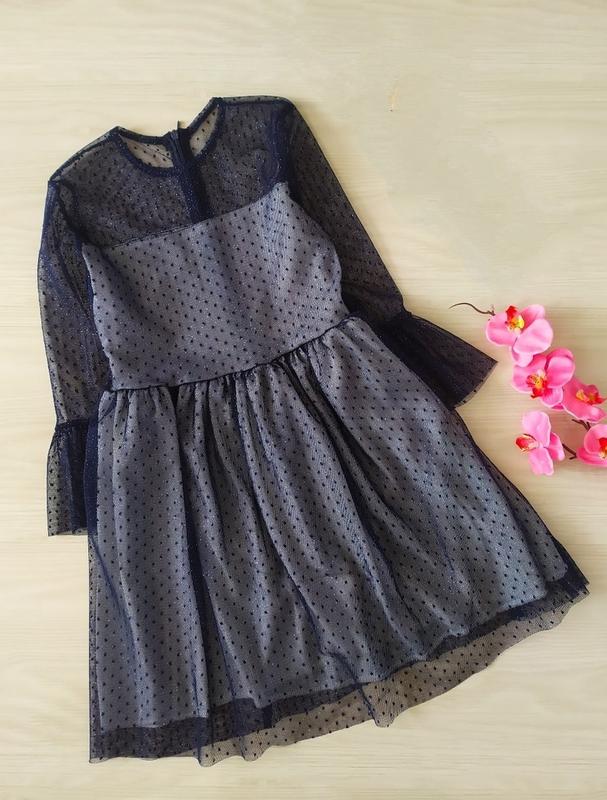 430 грн неймовірно красиве та ніжне платячко тканина верху євро сітка з напиленням, низ блискучий трикотаж ззаді завязується на поясок, на спинці є замочок для зручності одівання Дуже красиве вживу. рекомендуємо колір темно синій 134см-1шт 140см-1шт заміри 134см: довжина плаття 65см, пог 32см 140см: довжина плаття 67см, пог 33см допустимо+-1см