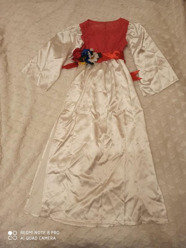Украиское платье для девочки. Была одета 1 раз. Удобная по фасону (пошив был для танца). С двух сторон идет разрез, рукава свободного кроя. Красный пояс нашит на резинку. Длина платья 113 см. ОГ 54 см. Расстояние между плечами 32 см. Длина коралловой ткани 28 см. Для более детальной информации воспользуйтесь сообщением, или по номеру телефона. Ваша девочка будет очаровательна в этом платье🌸
