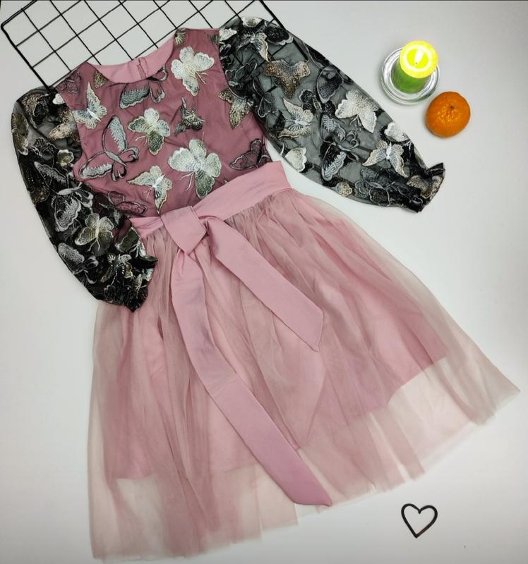 🦋Нарядное платье со съёмной фатиновой юбкой 🦋ткань костюмка с фатином с вышивкой юбка с двойного фатина сзади резинка 🦋по спинке молния размер/🦋длина платья/пог/рукав 128/🦋65/30/44-1шт 134/🦋68/31/45-2шт 140/🦋69/33/49-2шт 146/🦋71/34/51-2шт 152/🦋74/35/53-2шт