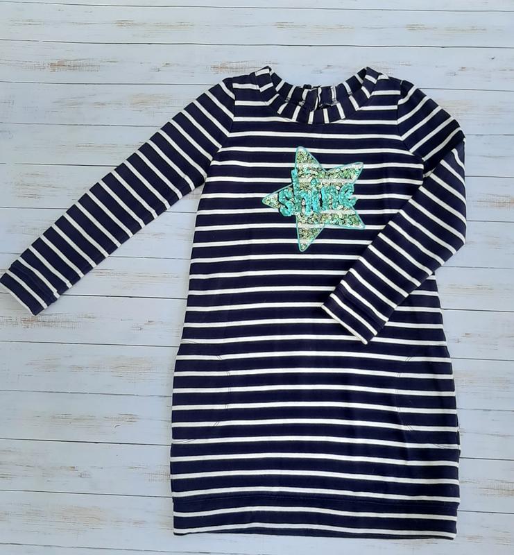 Синя сукня в білу смужку Розмір: 10-12 років Магазин: Gymboree Без бірок Заміри: По грудях: 39см Довжина рукава від плеча: 52см Загальна довжина: 76см
