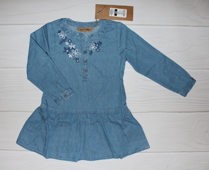 Джинсове плаття з вишивкою, розмір 98 див. Заміри: довжина 50см, ПОГ 29см, довжина рукава 35см.