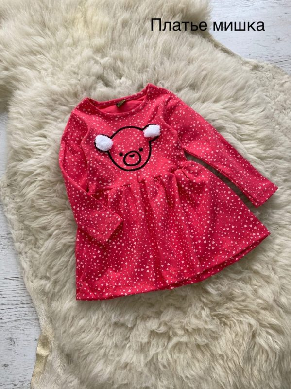 ✔ Очень красивое платье с мишкой. Ушки -меховые! Турция, трикотаж, шикарное качество! ✔ Размеры: 92 – дл 37, рук 29 98 – дл 41, рук 31 104 – дл 46, рук 33 110 – дл 48, рук 34