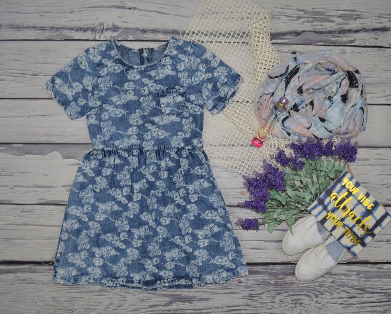 9 - 10 лет 140 см обалденное джинсовое платье сарафан варенка цветы denim co