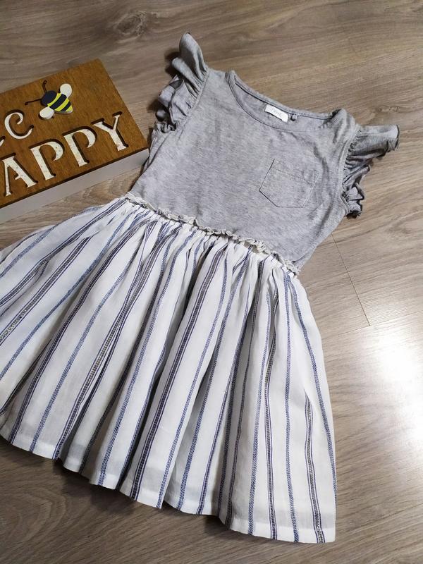 Очень красивое летнее платье для девочки на 4р. Подойдет для прогулок в жаркую погоду или в детский сад. Платье отрезное по линейе талии. Ткань легкая и нежная, что обеспечит комфорт ребенку. Юбка с люриксовой нитью на подкладке. Пояс на резинке. Бренд Next. (14)