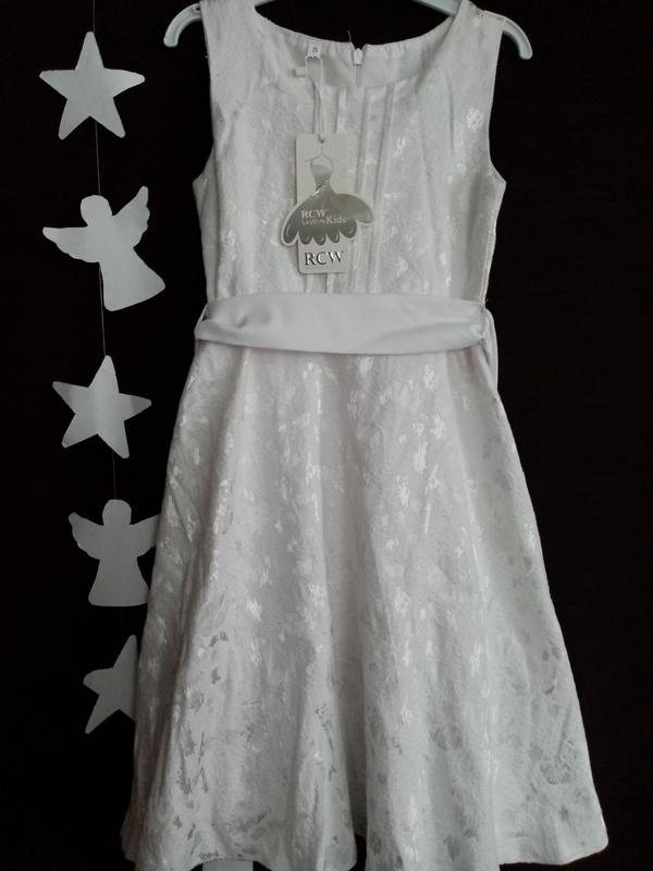 Дитяче плаття з підкладеою, додається білий поясок. Довжина плаття 68 см, пів талія 26,5 см + є поясок. Взаді на замочку, замок потайний Ріст 116 см