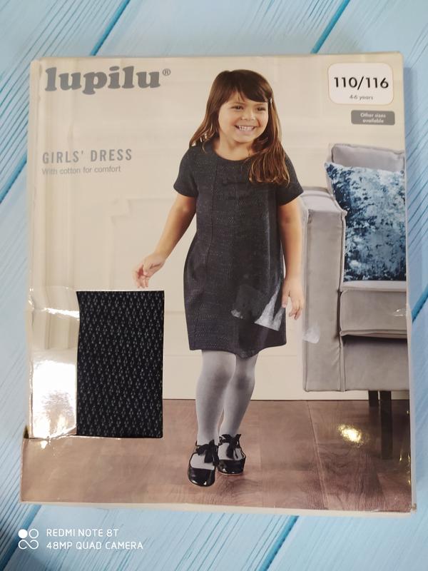 Стильное платье для модниц Lupilu рост 119/116 4-6 лет. Материал 89% хлопок, 10% полиамид, 1% эластан. В наличии замеры предоставлю, фото мои.