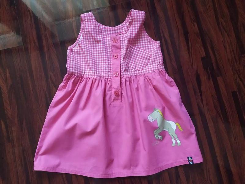 Платьице смотрится потрясающе, ребёнок в нём выглядит как куколка. Почти новое, без дефектов, в идеальном состоянии, 100% каттон. В подарок мокасины. Мы начали носить его с 1 года, смотрите мои замеры, они точные : длина - 45, ПОГ - 28, ПОТ- 28. Свободное, не сковывает движение, в нём легко и удобно. Длина стельки в мокасинах - 13 см. Спрашивайте, отвечу на все вопросы. Оплата на карточку приватбанка, отправка любым почтовым перевозчиком. Никаких других способов пересылки и оплаты нет.
