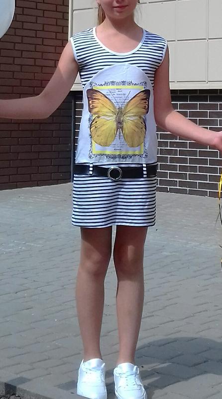 Симпатичное платьице. У модельки на фото рост 146. Родной поясок потерялся. Могу предложить другие варианты. Пересылка Укрпочтой или новой почтой.