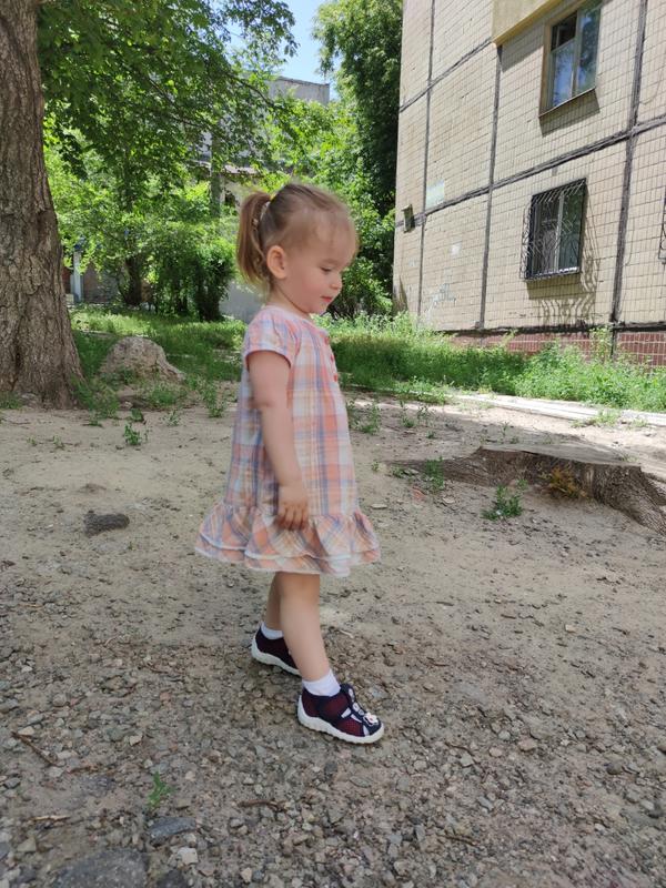 Лёгкое, почти не весомое платье. Ткань хлопковая с вкраплениями люрекса. Возраст указан 2-3, но платье маломерное. Мы носили в 2-2,5. Длина 48, ОГ-56.