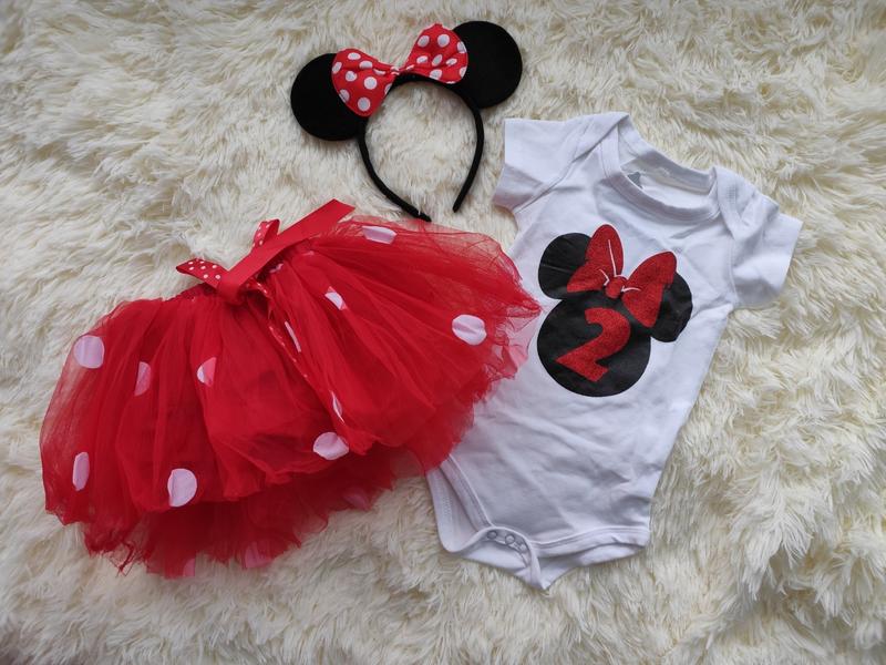 Набор боди, юбка пышная и ободок с ушками Минни Маус на 2 р. Длина боди 41 см, ширина 21 см. Длина юбки 23 см, ширина 18-30 см