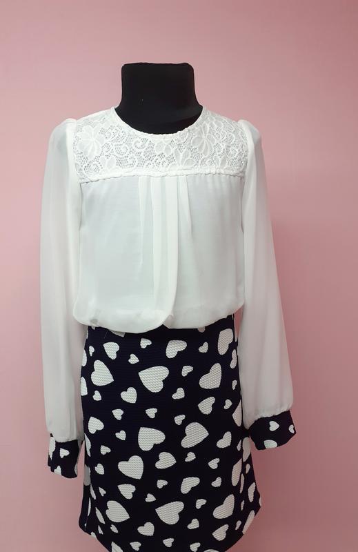 Распродажа Платье для девочки. Верх шифон, украшен гипюром. Юбка тянется,из трикотажа Размеры :128-140-152-164 Замеры: 140р Длина рукава от горловины 59см. Длина рукава от плеча 54см Талия полуобхват 35см. Длина от плеча 72см 152 р Длина платья от плеча 78см, Длина рукава от горловины 62cm Длина рукава от плеча 56см. талия полуобхват.36см