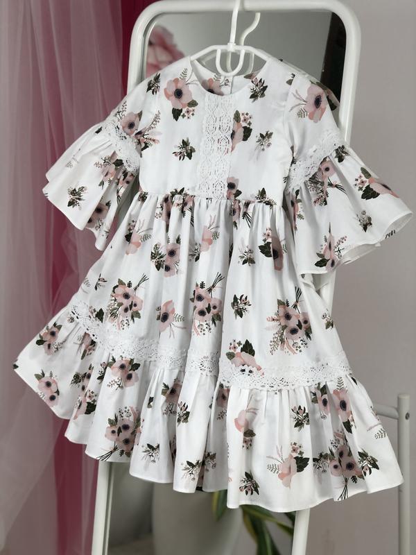 Ніжна сукня принт квіти з мереживом, плаття квітковий принт