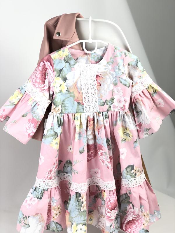Стильна сукня в квітковий принт, рукав 3/4 з мереживом