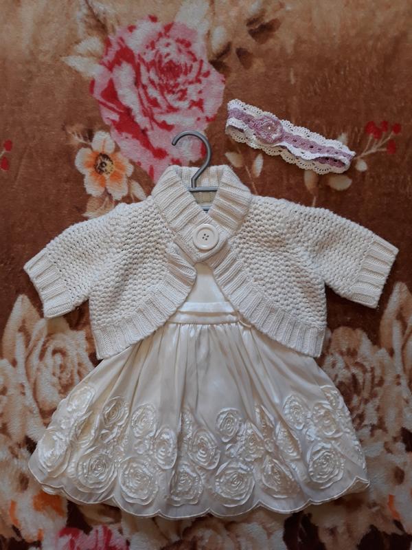 Нарядное платье на девочку. Очень красиво.Болеро покупали отдельно, цена за все. Повязочка в подарок от 6 до 12 месяцев