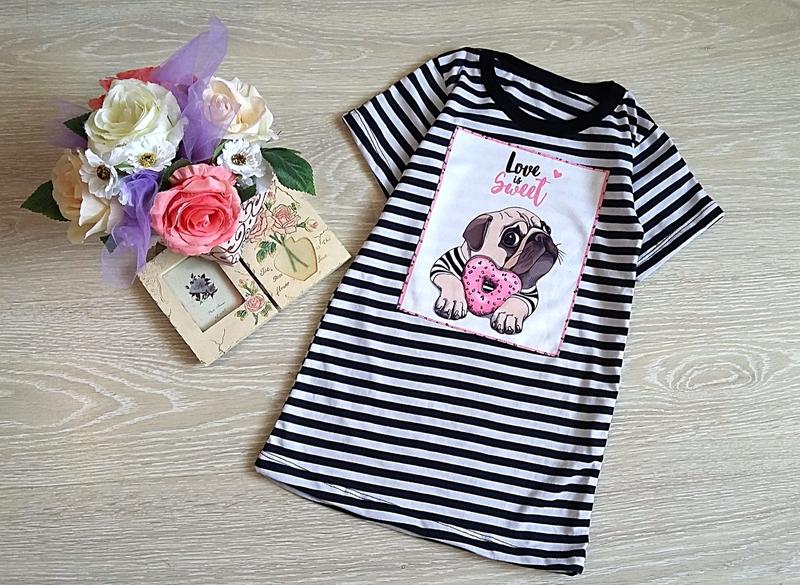 туника-платье на девочку с милым мопсом размер в наличии 64 (104-110) - на 4-5 лет