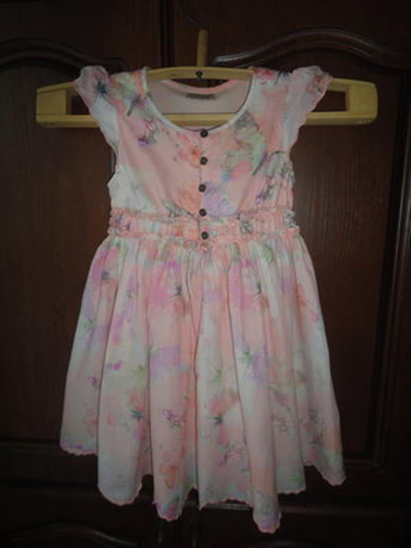 нежное платьице в бабочки. тонкая натур. ткань. с подьюбником таким же. на 3-4 года. Длина 61 см ПОГ 29 см ПОТ резинка 26-30 см
