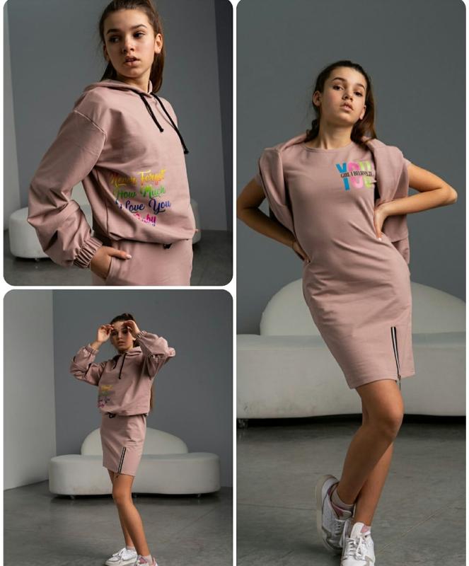 крутой комплект двойка(платье+кроп-топ) ткань- двунитка пенье качество супер размеры-полномеры 134-140-2шт 146-2шт 152-1шт 158-2 164