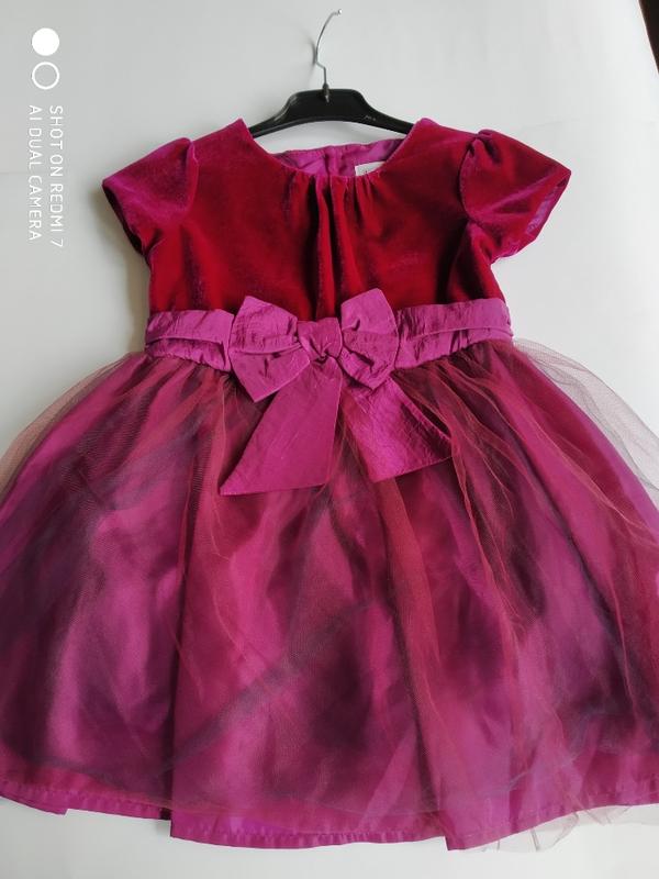 Платье фирмы F&F на возраст 2-3 года, рост 92-98 см, по спинке пуговицы. Замеры: полуобхват груди 30 см от плеча до талии 23 см от талии до низа 33 см общая длина 53 см.Спереди есть небольшая затяжка, которая на темном фоне нижней юбки незаметна.