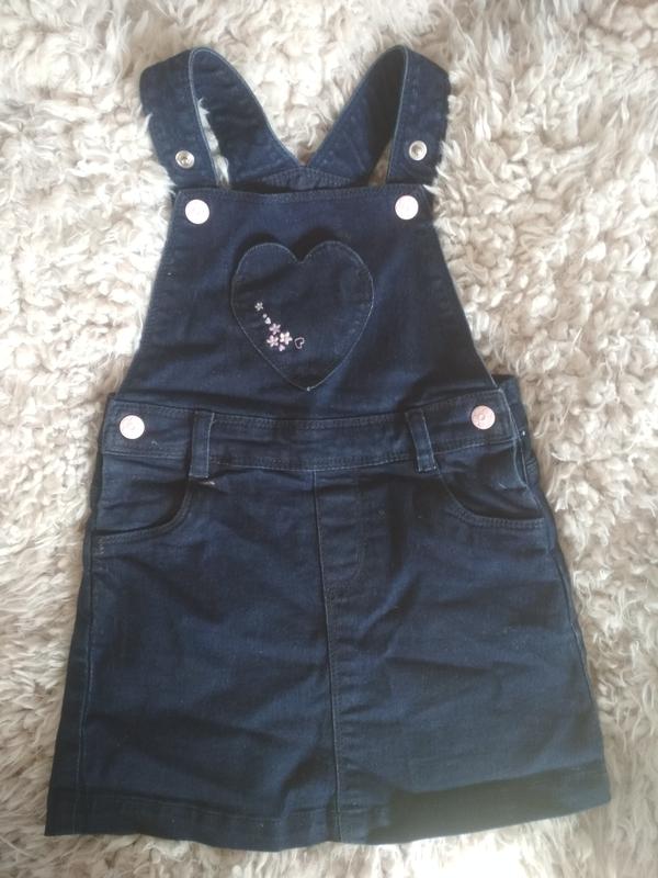 Фирменный джинсовый сарафан Состояние идеальное, без дефектов На рост 92,можно чуть меньше, за счёт брителей