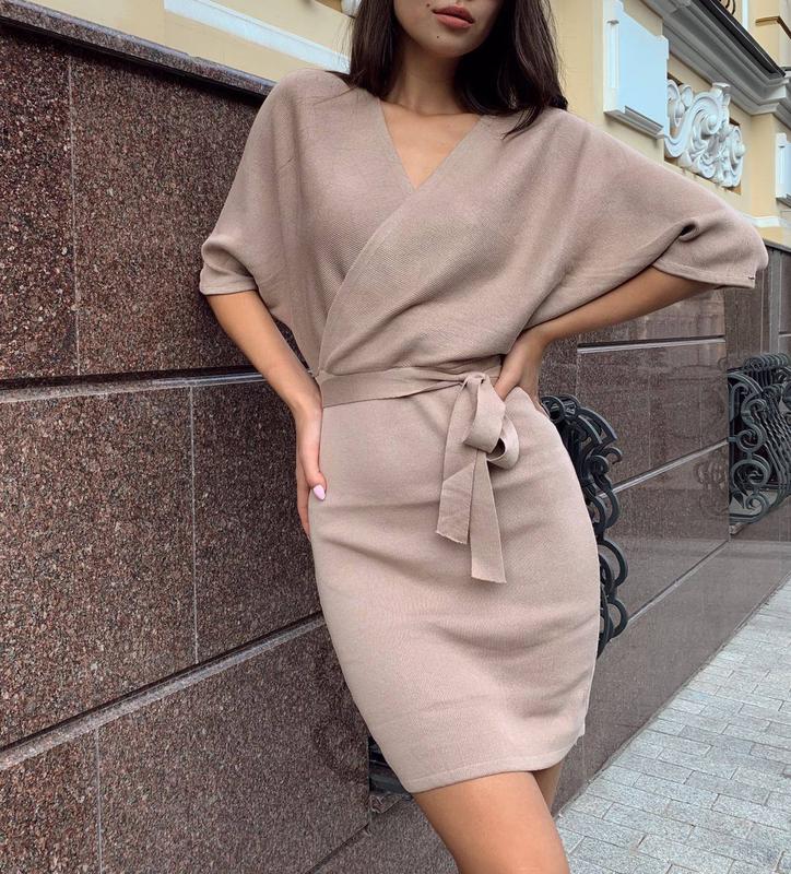 Трикотажное платье ❣️ Мод:340 Цвет: чёрный, бежевый Размер: универсал Длина 84см