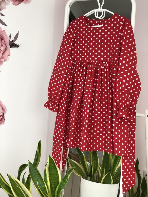 Лляна стильна сукня в горохи платья лен довгий рукав