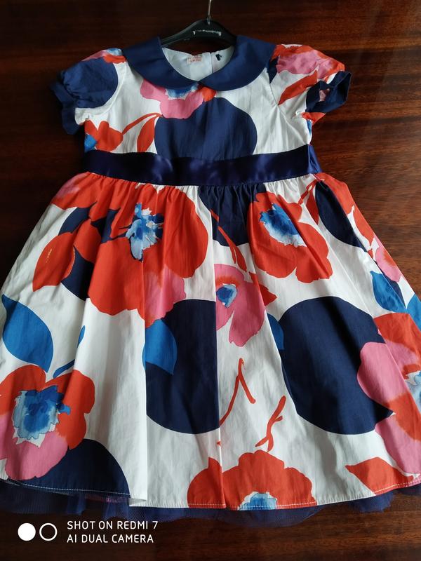 Отличное платье для вашей красавицы на возраст 2-3 года, рост 92-98 см, на спинке пуговицы, пояс завязывается и подчеркивает талию. Замеры: полуобхват груди 27 см от плеча до юбки 22 см от юбки до низа 33 см общая длина 55 см